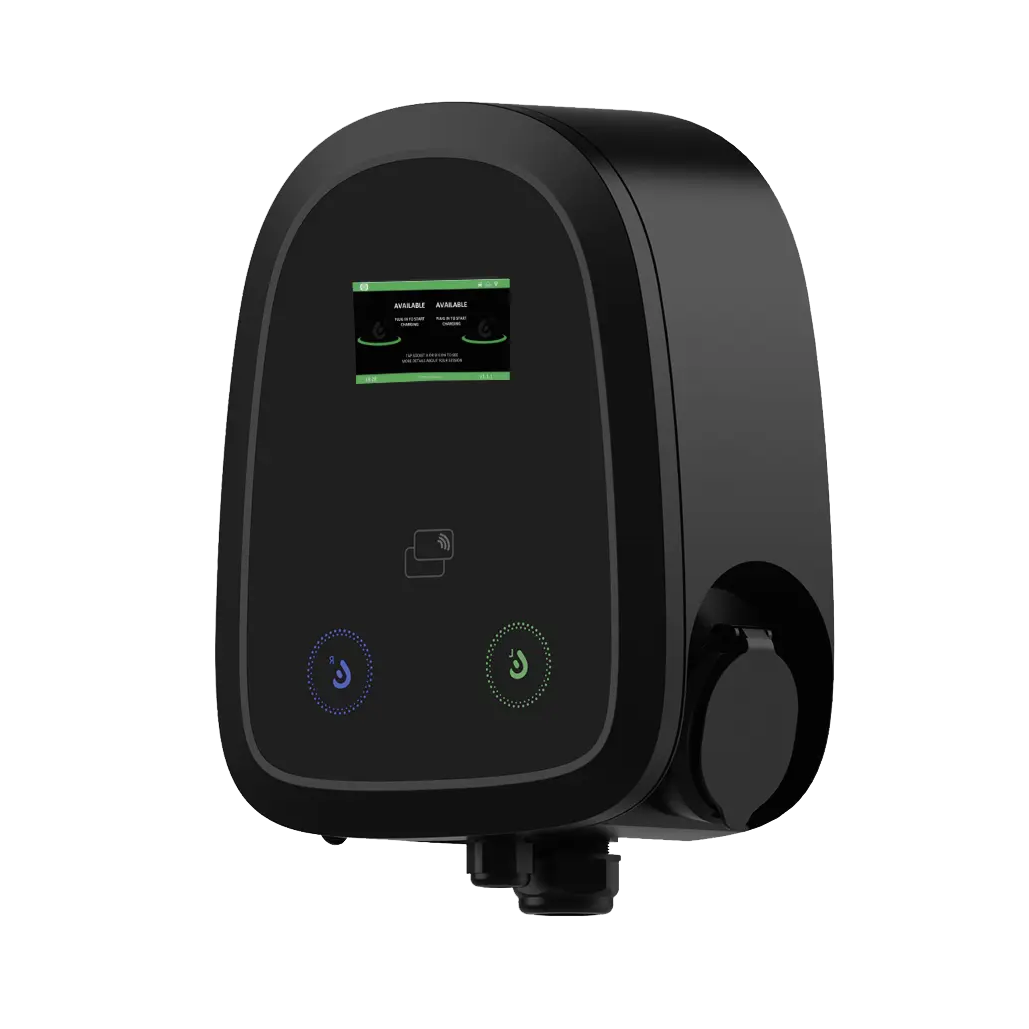 This AC dual-socket/plug EV charger can charge two electric vehicles at the same time. This model is available for wall mounting and is ideal for shared spaces where multiple electric vehicles can charge. The ideal deployment locations include multifamily housing communities, schools, recreational centers, shopping centers, healthcare facilities, and workplaces.