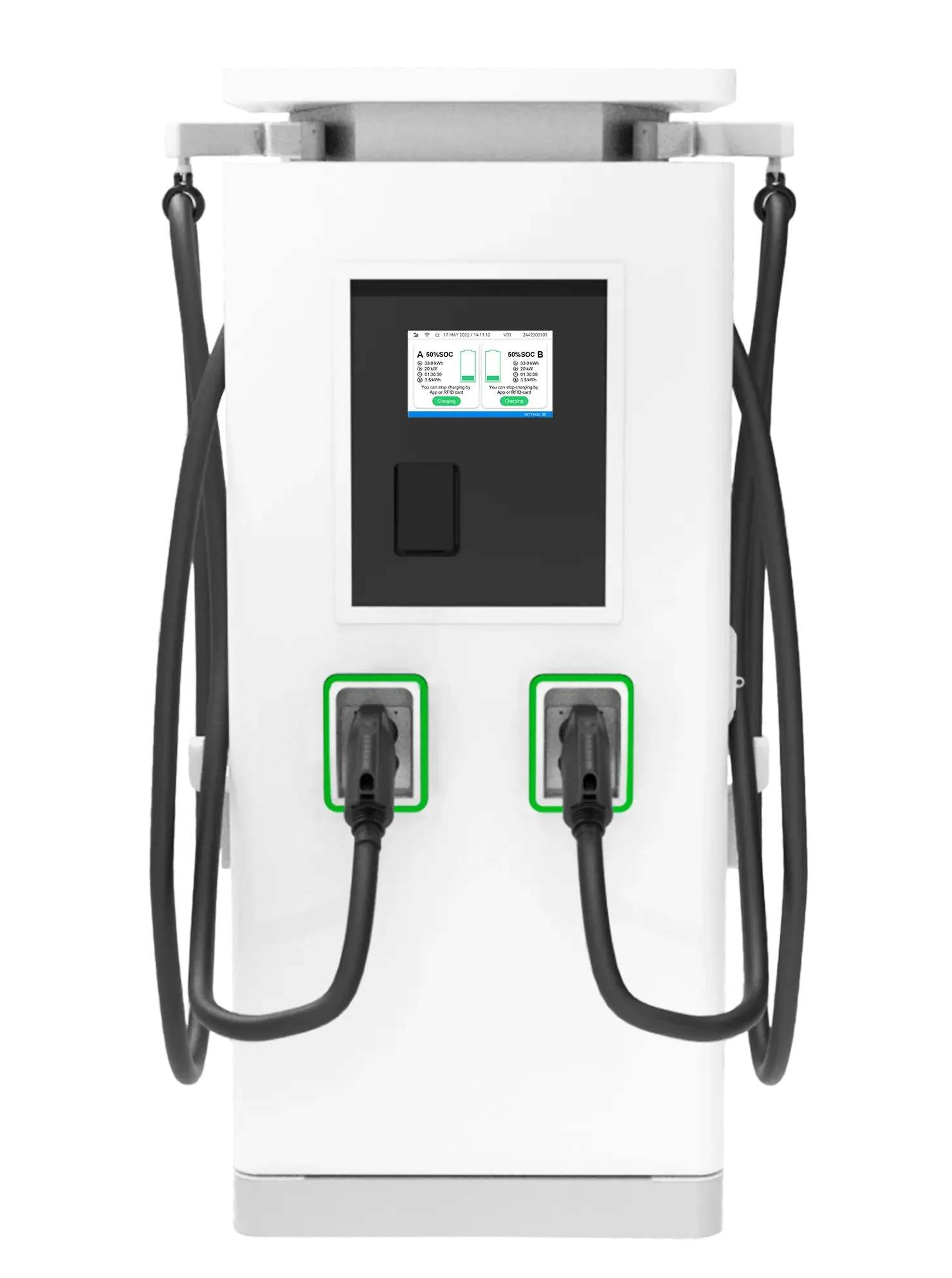 This wall-mounted DC EV charger offers a dual charging connectors solution, which allows the charger to charge 2 vehicles simultaneously. With an IP54 grade, this metal enclosure charger can be used for outdoor and indoor use.